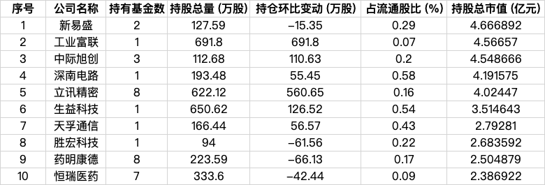 例如,摩根士丹利基金和宏利基金的第一大重仓股均为新易盛(300502)。摩根士丹利基金旗下2只基金合计持有127.59万股,持有市值高达4.67亿元,该股今年来涨幅高达354%。值得关注的是,摩根士丹利基金三季度前十大重仓股中,有多家AI光模块龙头,如中际旭创(300308)、新易盛、天孚通信(300394)、深南电路(002916)、生益科技、胜宏科技等市场热门龙头股。